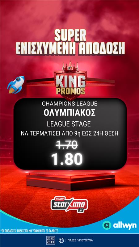 - Να τερματίσει από 9η έως 24η θέση ο Ολυμπιακός σε απόδοση 1.80* από 1.70