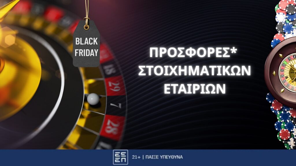 Η «μεγάλη εβδομάδα» των ειδικών black friday bonus στις προσφορές* στοιχηματικών εταιριών είναι εδώ και παρακάτω μπορείτε να εντοπίσετε τις πιο «hot» επιλογές για να επωφεληθείτε από την μεγάλη γκάμα σε προωθητικές ενέργειες που δίνουν οι νόμιμες στοιχηματικές εταιρίες στην Ελλάδα.