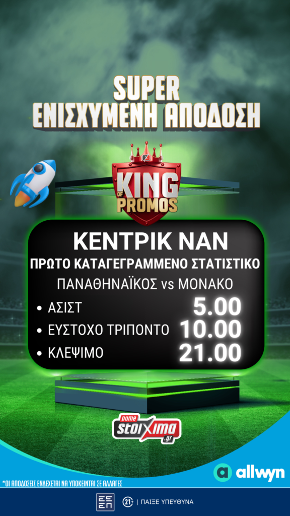 Με το Score More Win More, κερδίζεις έπαθλα* για κάθε πόντο που σημειώνει ο Κέντρικ Ναν, μετατρέποντας κάθε καλάθι σε ευκαιρία για επιπλέον κέρδη* και ανεβάζοντας την εμπειρία σε άλλο επίπεδο.